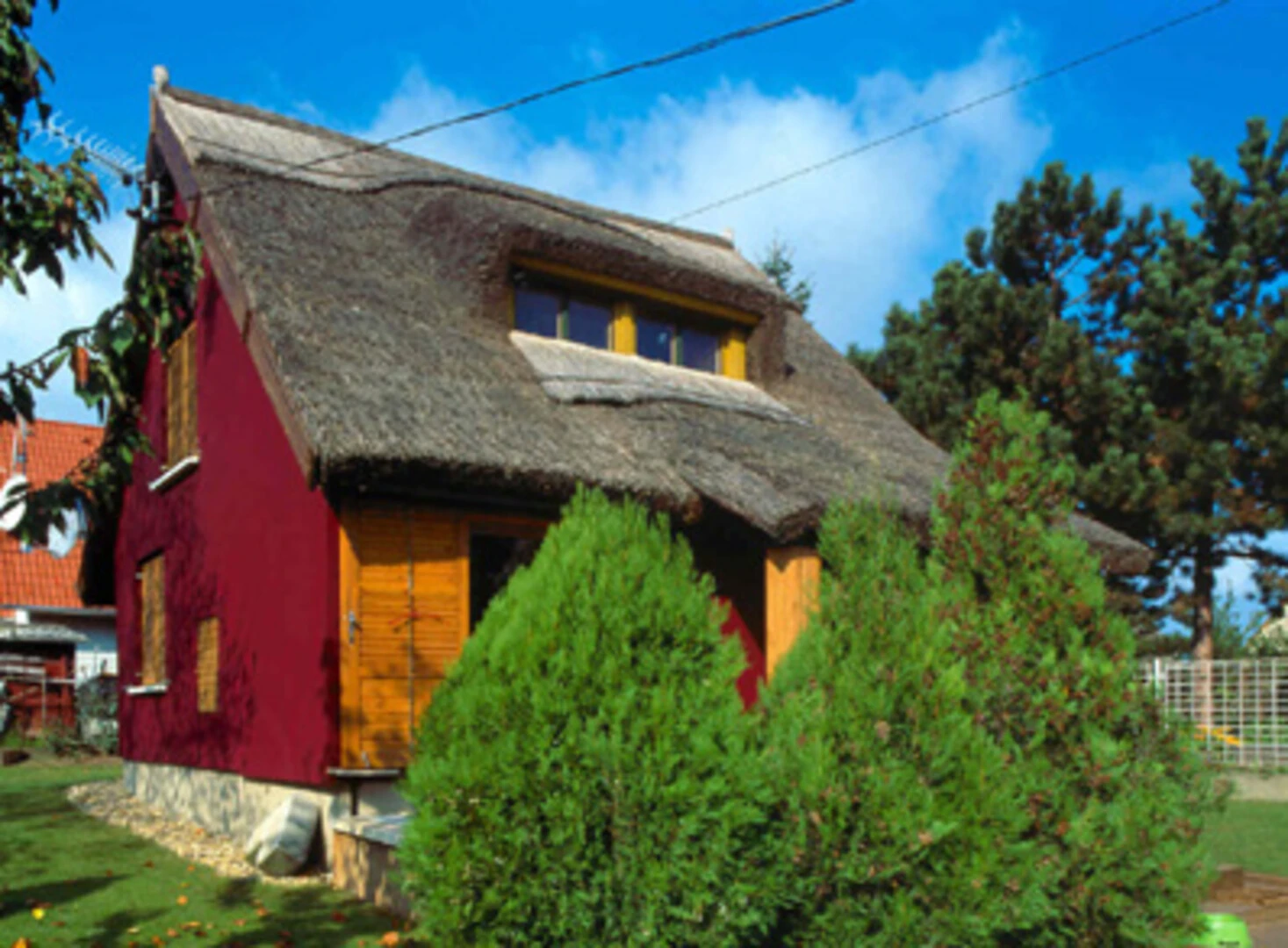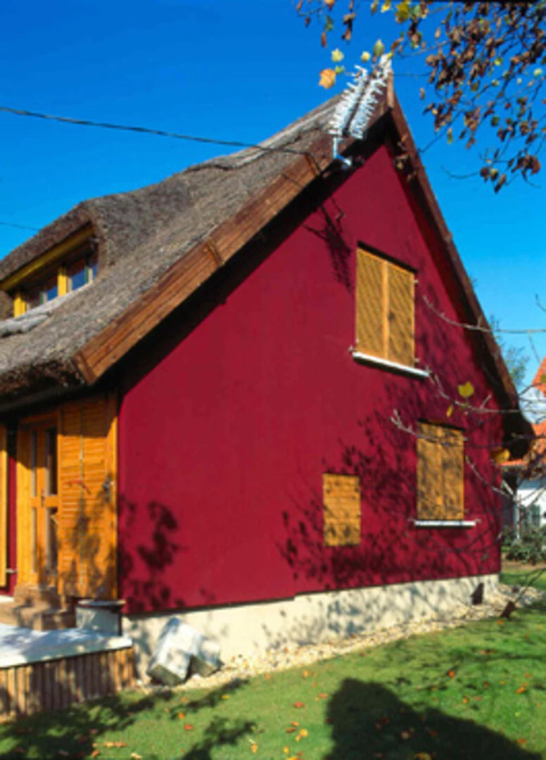 A nádfedeles házat felújították, melynek során weber.therm hőszigetelő rendszert használtak, majd fedővakolatként weber.pas classic vékonyvakolatot.