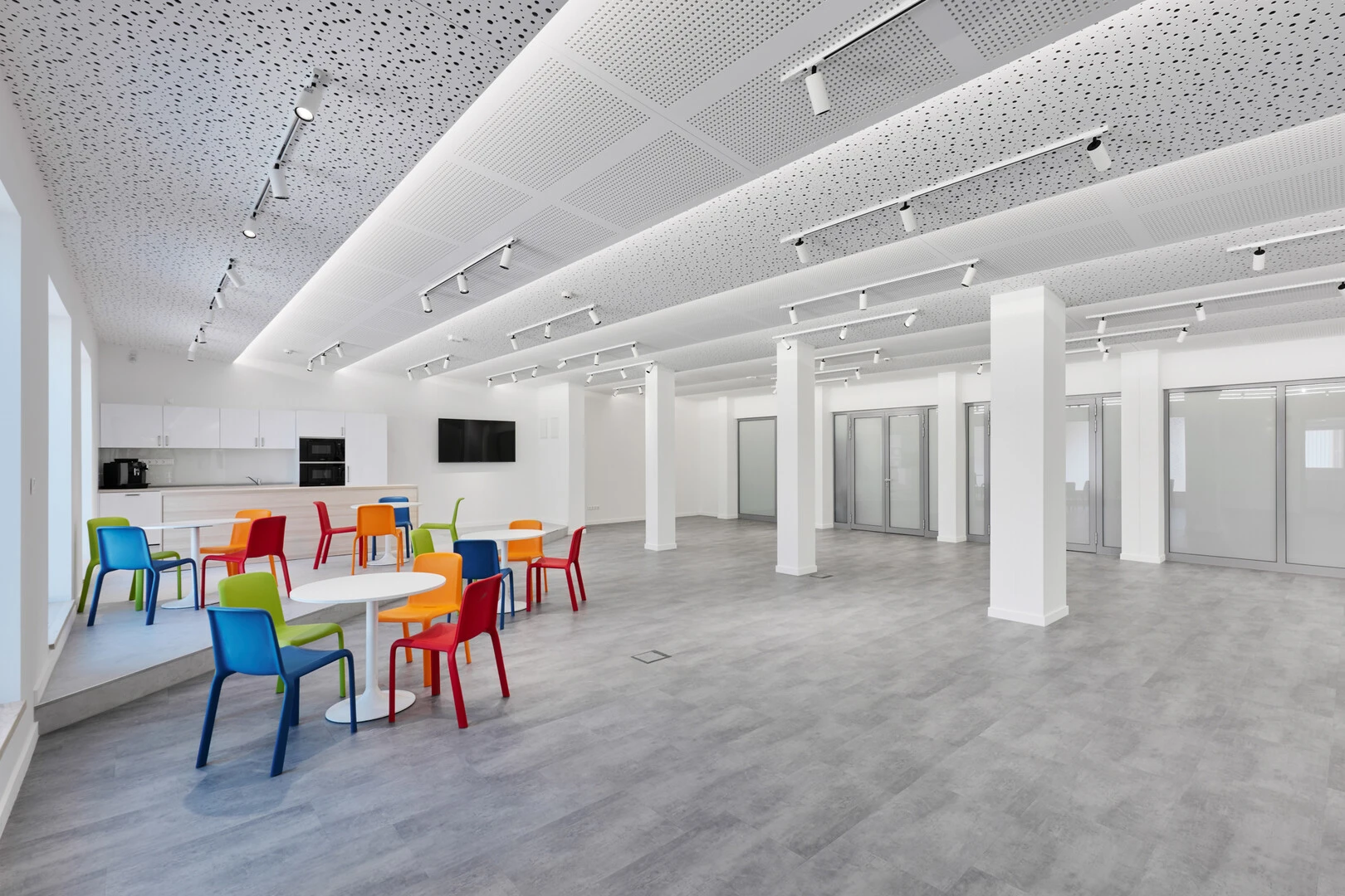 Alapterülete közel 550 m2, amely teret ad egy tágas aulának, két elméleti és egy gyakorlati teremnek, valamint a kapcsolódó helyiségeknek.